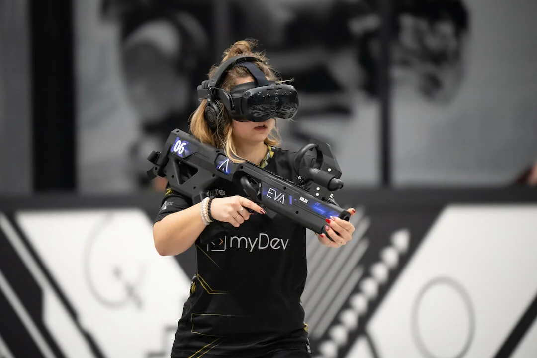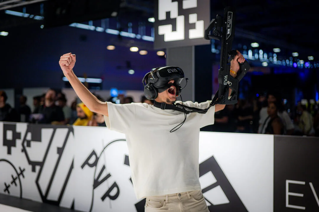 EVA repousse les limites du gaming en créant des espaces de jeu physiques équipés des technologies VR les plus avancées. Dans ces arènes de 5400 sq ft, les joueurs s’affrontent ou coopèrent sur des jeux exclusifs conçus par EVA.